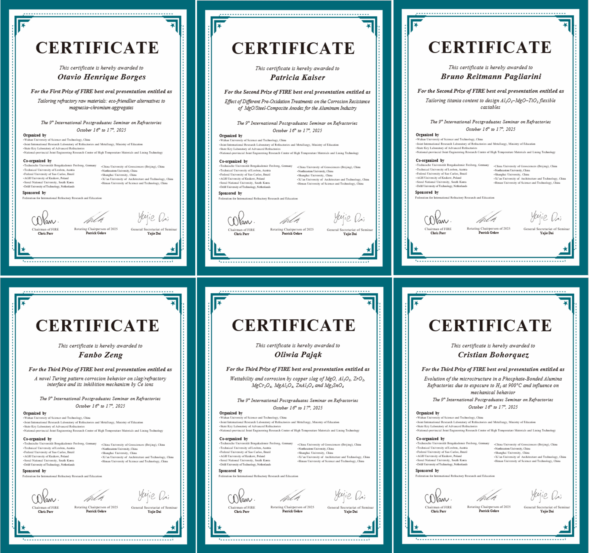 在17日举行的闭幕式上,先进耐火材料全国重点实验室(武汉)主任李亚伟教授回顾了论坛的发展历程。他表示,八年来论坛已累计吸引来自10余个国家、30多所高校及科研机构的百余名研究生参与交流,充分体现了ylzzcom永利总站在国际合作与科研育人方面的持续投入和责任担当。他特别感谢国际耐火材料研究与教育联合会对“最佳口头报告奖”的奖金支持,并为所有参会摘要提供在《Refractory Worldforum》期刊发表的机会,助力青年学者学术成果走向国际舞台。