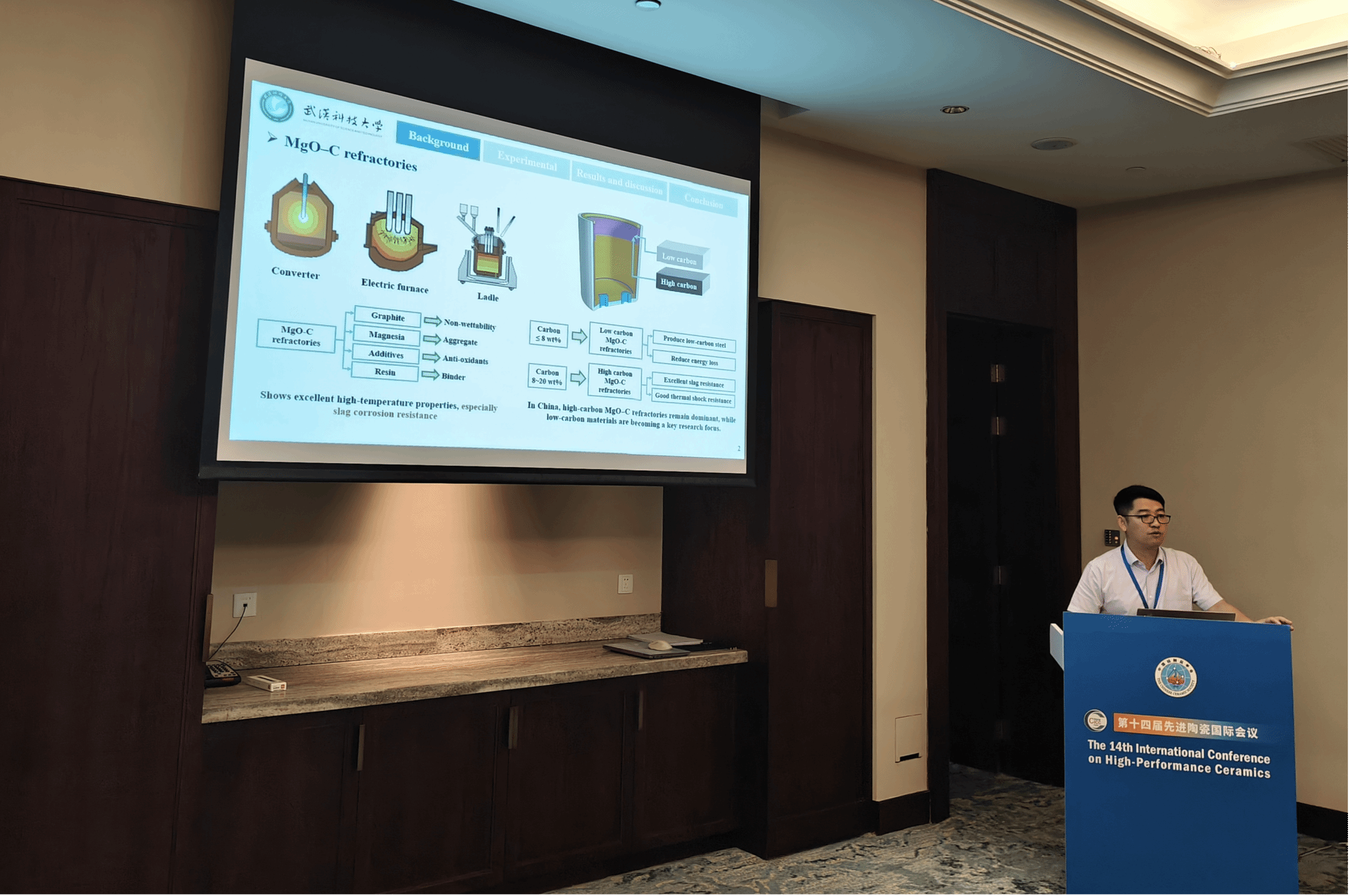 ylzzcom永利总站材料学部张海军教授、朱天彬教授和陈俊峰副教授担任分会场主席,朱天彬教授、王庆虎教授、陈俊峰副教授等分别作题为“Enhanced Corrosion Resistance of MgO-C Refractories Containing Sintered MgAl2O4 Powder under Various Slag Basicity”“Environment-Friendly Ca2+/Cr3+ Co-Doping LaAlO₃ Ceramics with Excellent Infrared Radiation Performance for Energy-Saving”“A Novel Approach to Refractory Lightweight: Fabrication of Lightweight Spherical Aggregates”等分会场邀请报告,胡琛、高亚博、吕俊毅等研究生作口头报告。